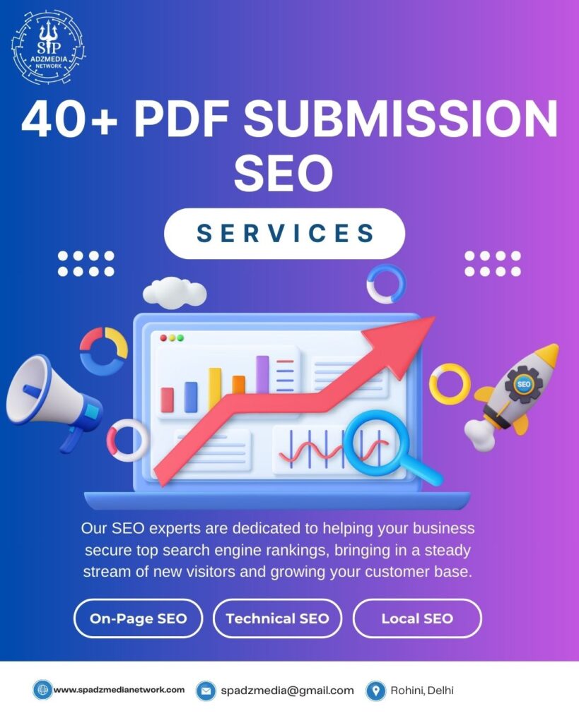 PDF submission involves uploading informative or promotional PDF files — such as eBooks, case studies, brochures, or guides — to high domain authority (DA) websites. These PDFs can include links to your website, helping you earn valuable backlinks and organic traffic.